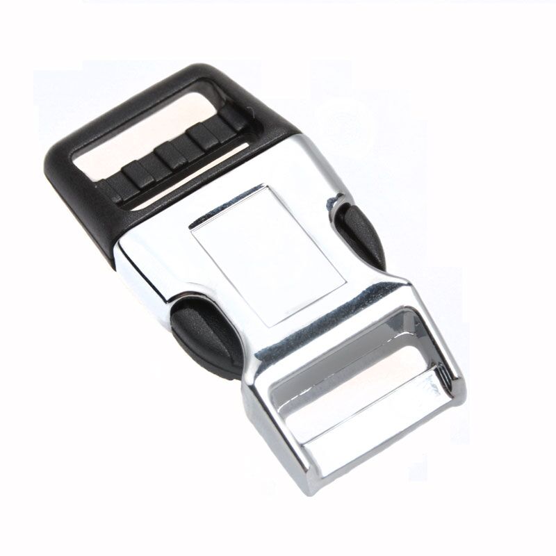The total width of buckles for dog collars is 5/8 inch available to take the 16 mm webbing and collars. Perfect for your collars for medium – large dogs with a neck size bigger than about 16″. The curved design ensures comfort against neck during activity. This type of metal dog collar buckle is perfect for pet collar closure. We have 15 mm, 20 mm, 25 mm and 32 mm buckles. And there are many colors of breakaway buckles for sale. Both of the plastic part of buckle and metal part can replace the colors. Just as your requirements.
