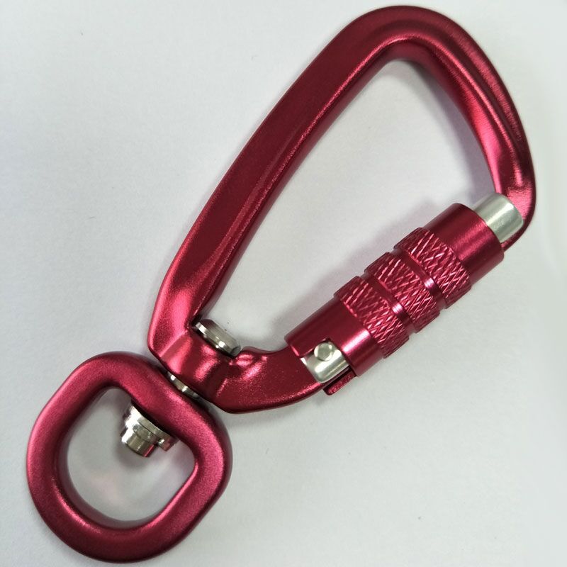 15MM red swivel auto lock carabiner aluminium alloy hook. Kimjee is the large and leading manufacturer of Personalised aluminum swivel dog lead hooks china. The black swivel carabiner clip ensures the occasional escape will not happen.The traditional clip on most leashes will on occasion allow the collar ring to slip right through and we have an AWOL dog on the run. Another feature that people love this carabiner is the thick handle that you can hold securely in your hand.