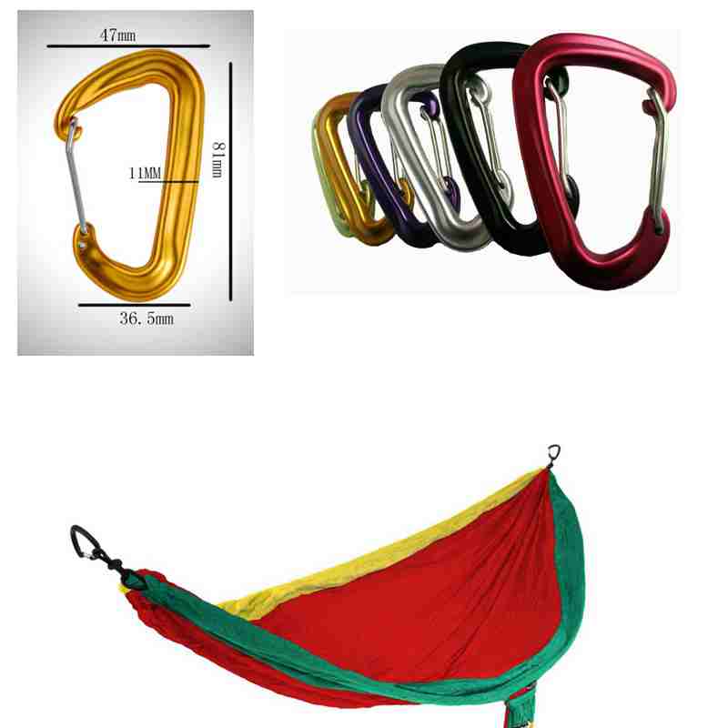 - Aluminum carabiner d shape strong by concentrating weight on the straight spine.