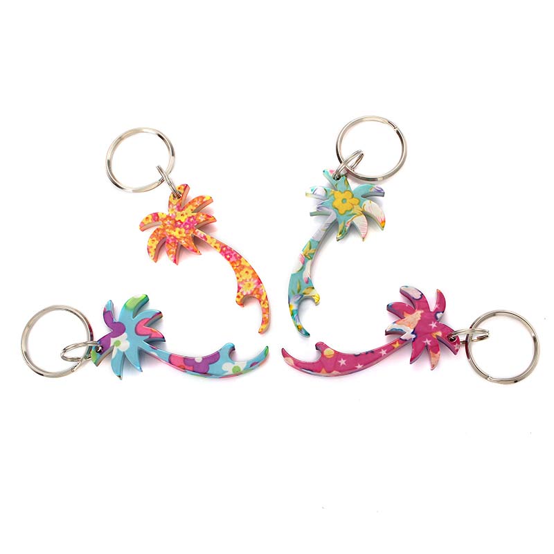 Aluminum alloy palm tree shape small bottle opener keyring