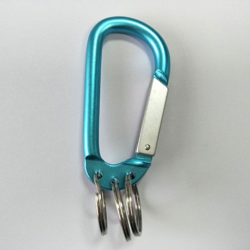 china wholesale blue color aluminum carabiner key rings, the carabiner is made of high hardness aluminum alloy. Elegant,strong and practical. Various vibrant colors bring you a colorful day. Very eye-catching in daily life use. D-nuts buckle design,well made locking mechanism make it better ability to bear load.