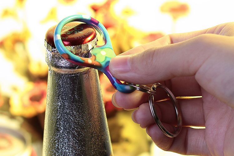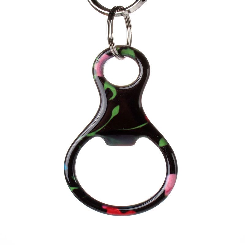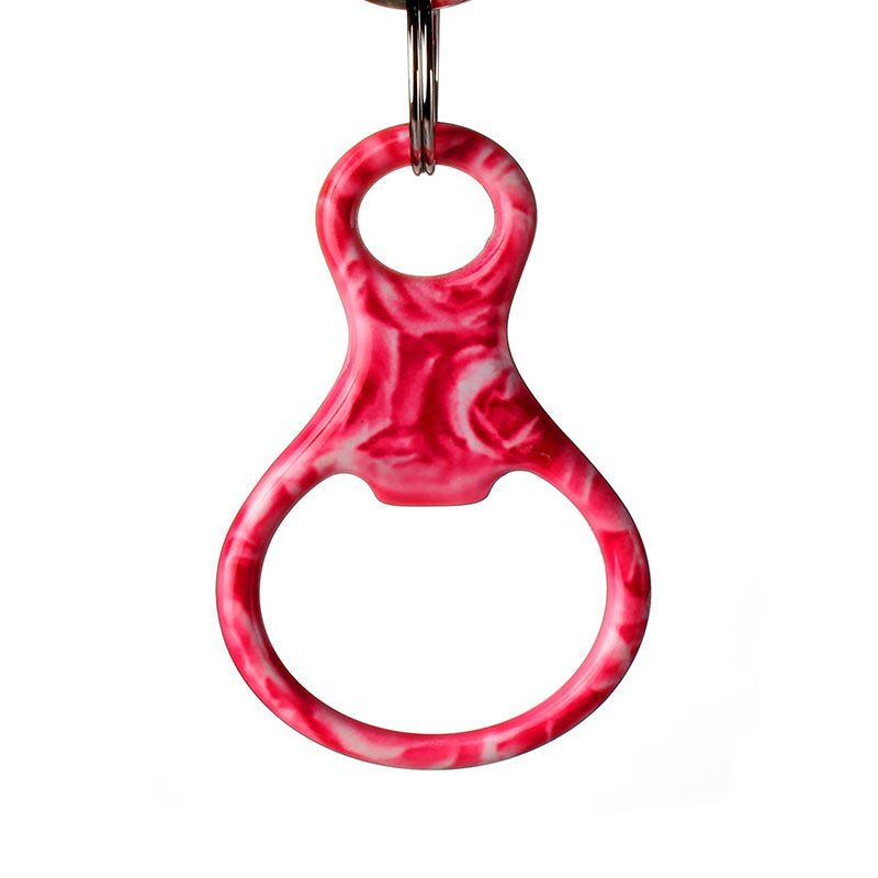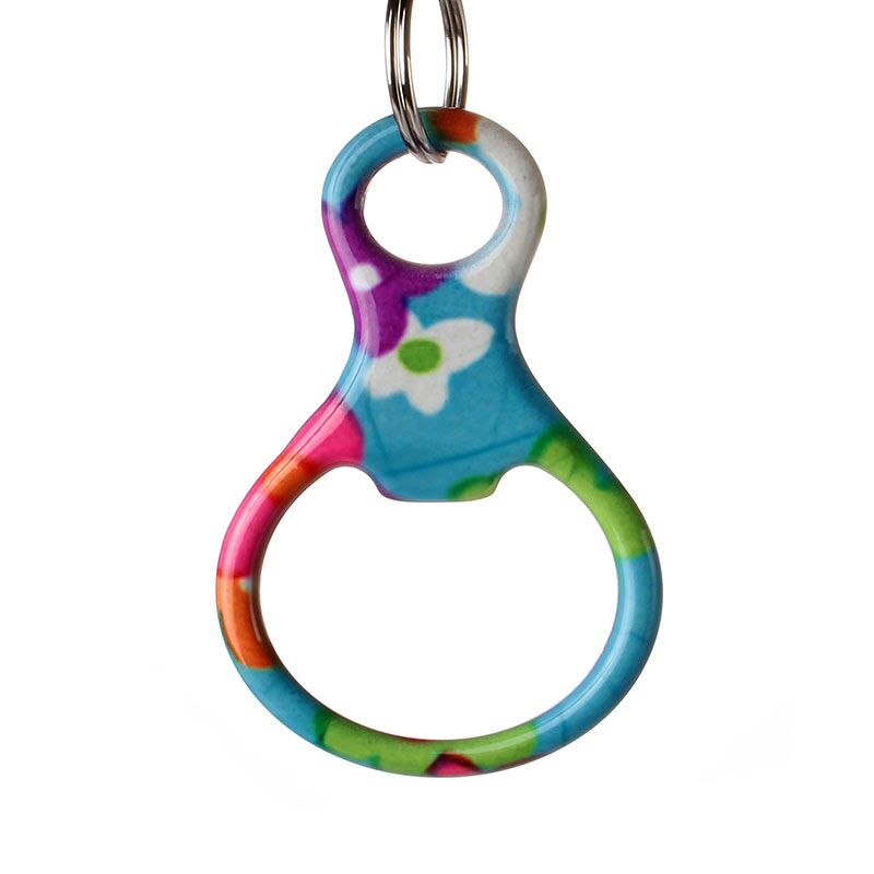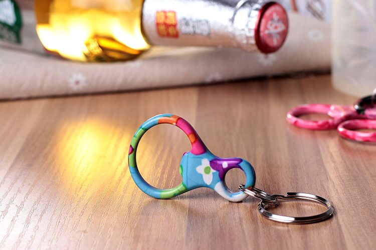 Fashion design bottle opener with key chain. A great gift of beer bottle and pop bottle key holder! Solid aluminum construction with metallic color finish. Ideal for key holder, key tag, key chain, key ring, travel, biking and self promos. The product can be customed or added logos.