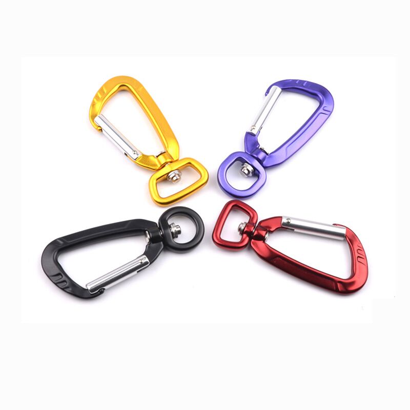 Hot sell multi carabiner logo 7075 aluminum carabiner manufacturer. This is a good quality soft weight aluminum swivel carabiner clips for dog leads, also ideal for use on dog tags, straps and much more. This carabiner is made of aviation aluminum , which makes it Rust proof and improves overall strength. The leash has 5 kn of tensile strength, anti ultraviolet, rot resistant and will not mildew. No screwing just push and lock in place.