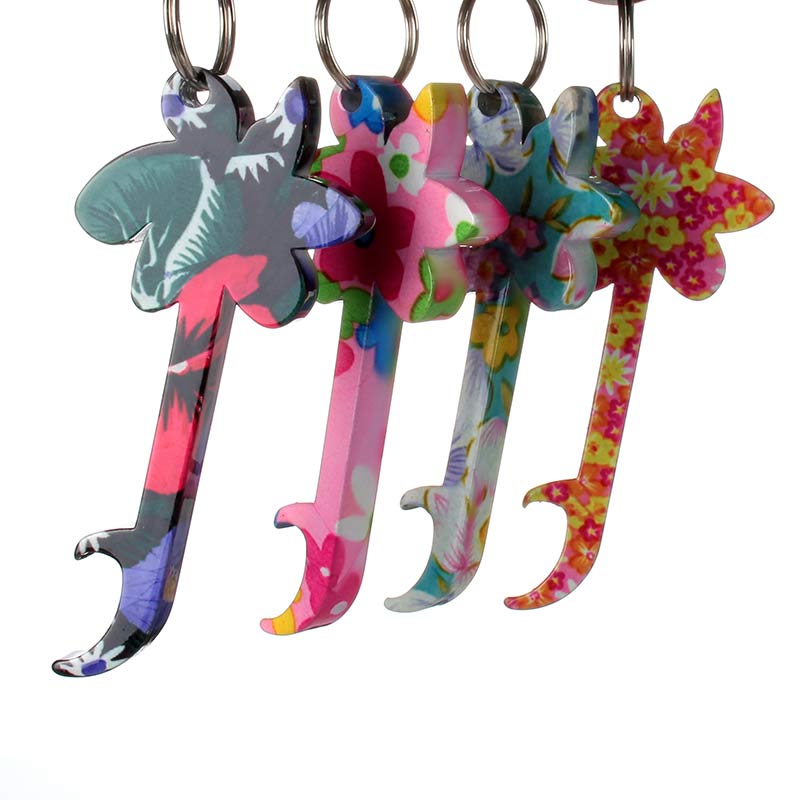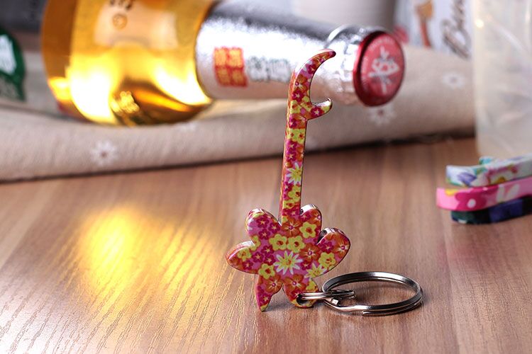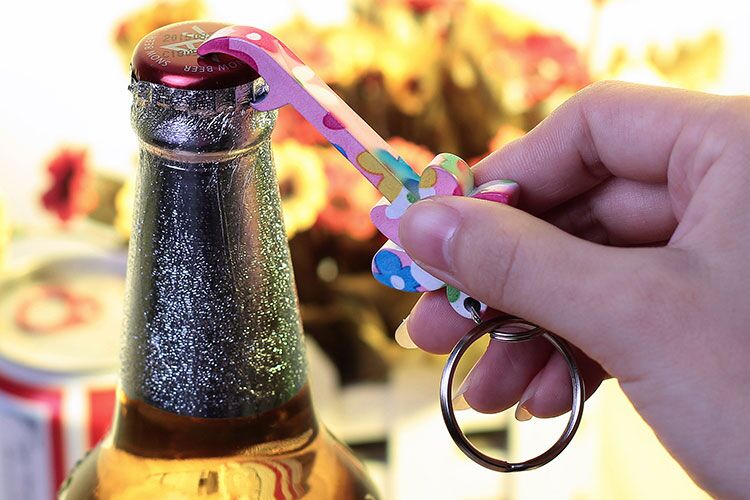 Fashion design bottle opener with key chain. A great gift of beer bottle and pop bottle key holder! Solid aluminum construction with metallic color finish. Ideal for key holder, key tag, key chain, key ring, travel, biking and self promos. The product can be customed or added logos.