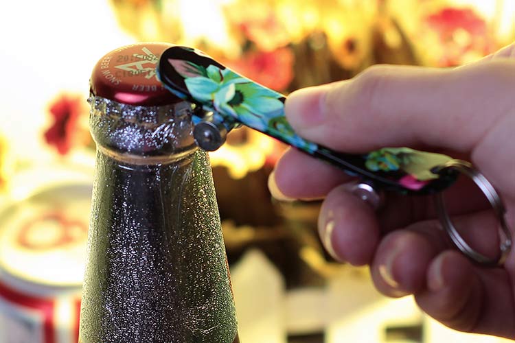 Fashion design bottle opener with key chain. A great gift of beer bottle and pop bottle key holder! Solid aluminum construction with metallic color finish. Ideal for key holder, key tag, key chain, key ring, travel, biking and self promos. The product can be customed or added logos.
